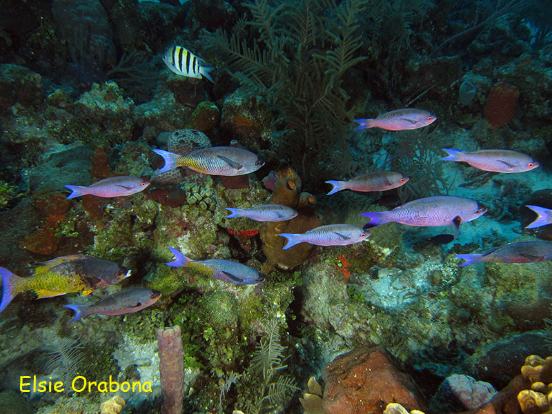 Recife bem interessante com muitas gorgônias, poliquetas, frades, ciliares e outros cardumes diversos.