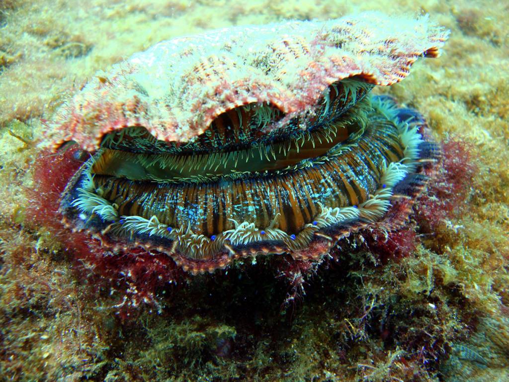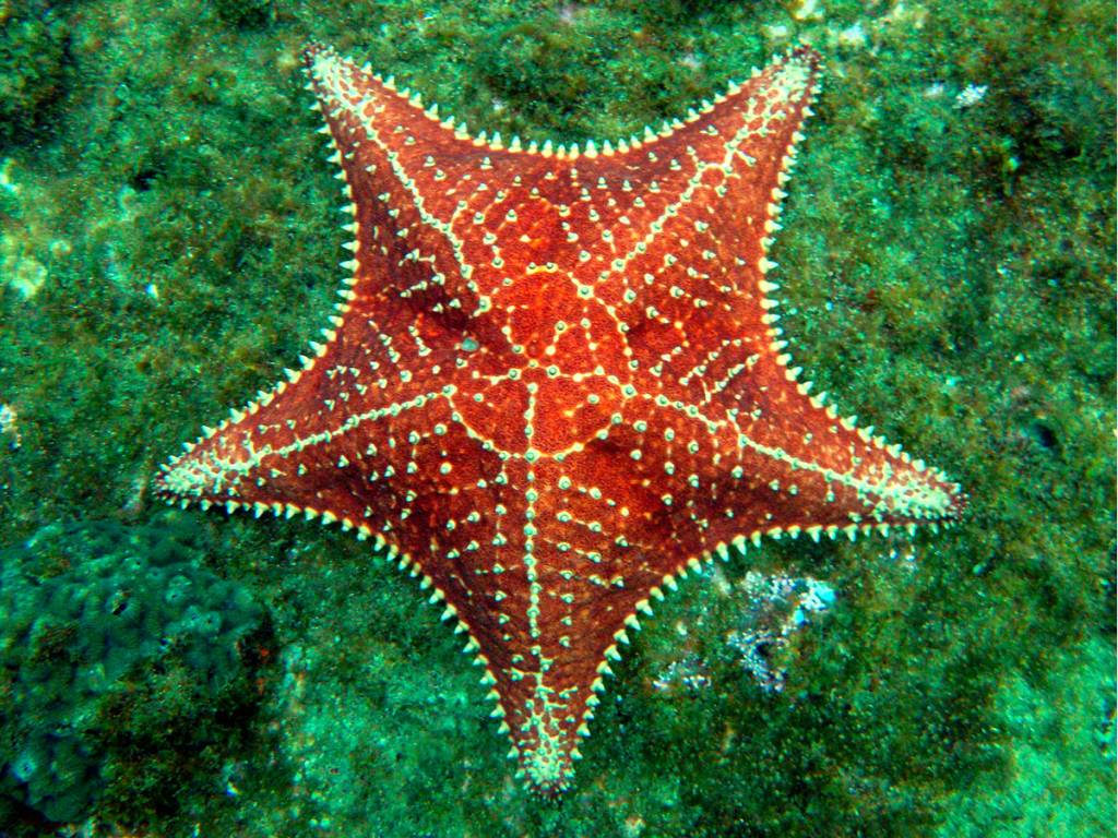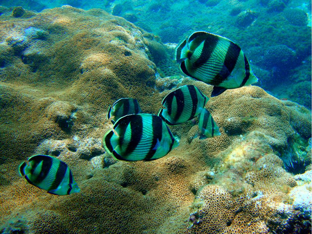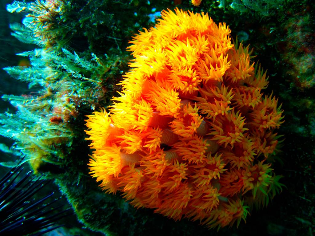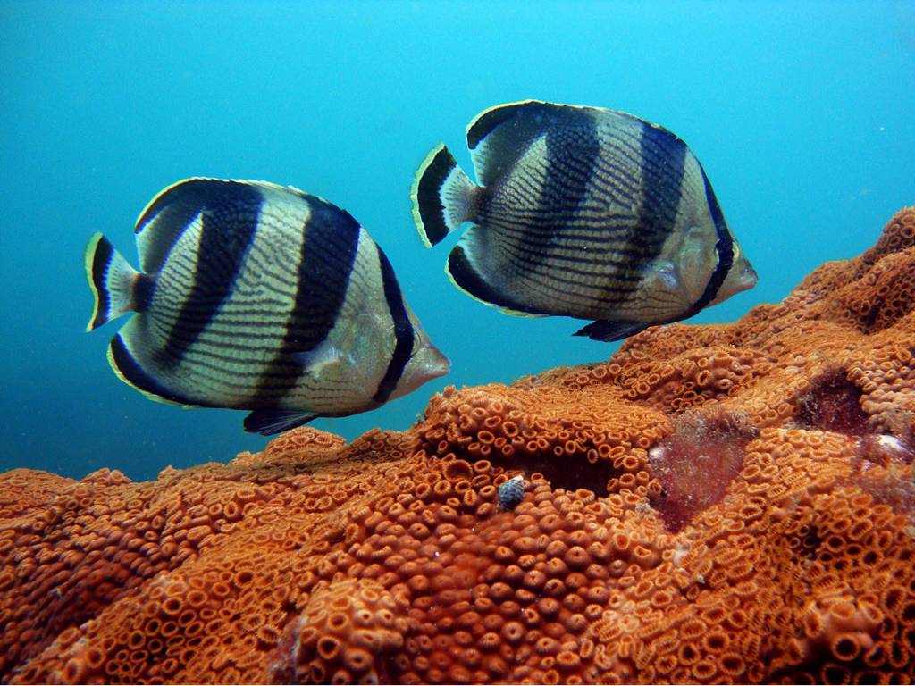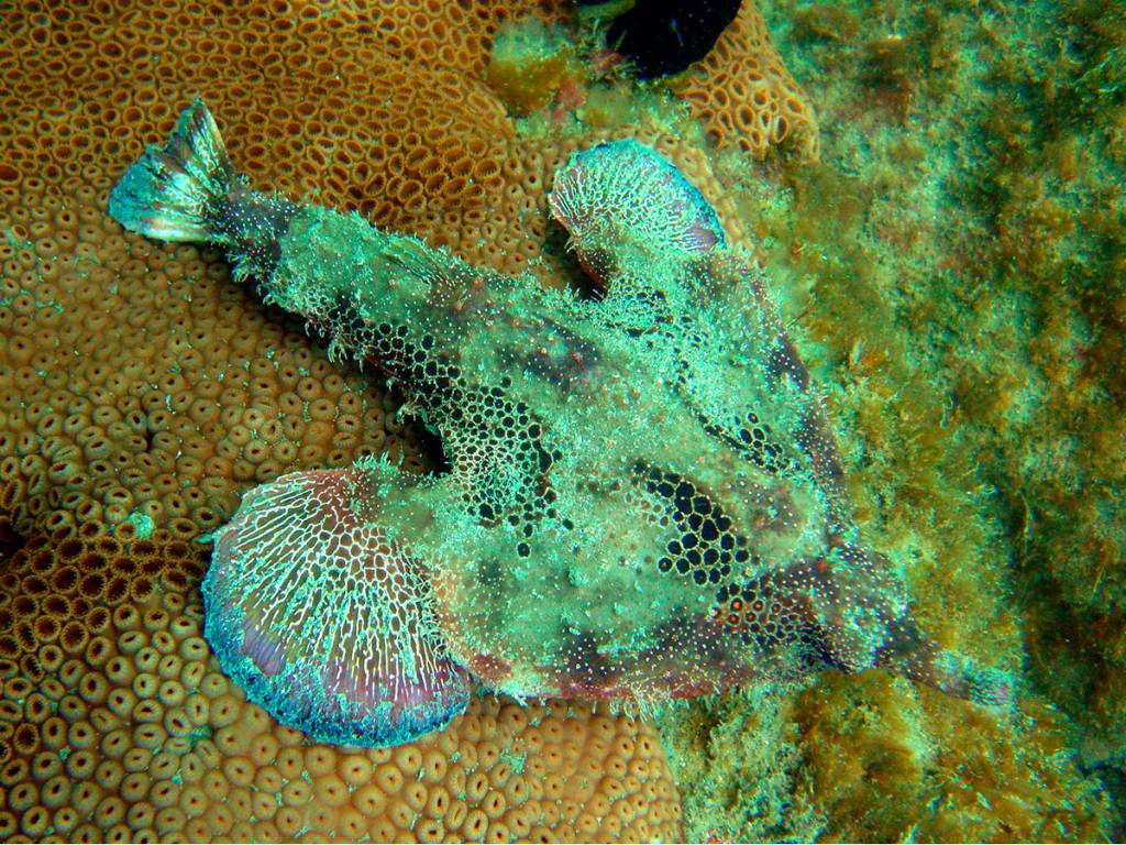 Temos muitos corais-cérebro, coral-babão, coral-sol e algumas outras espécies, além de gorgônias vermelhas.