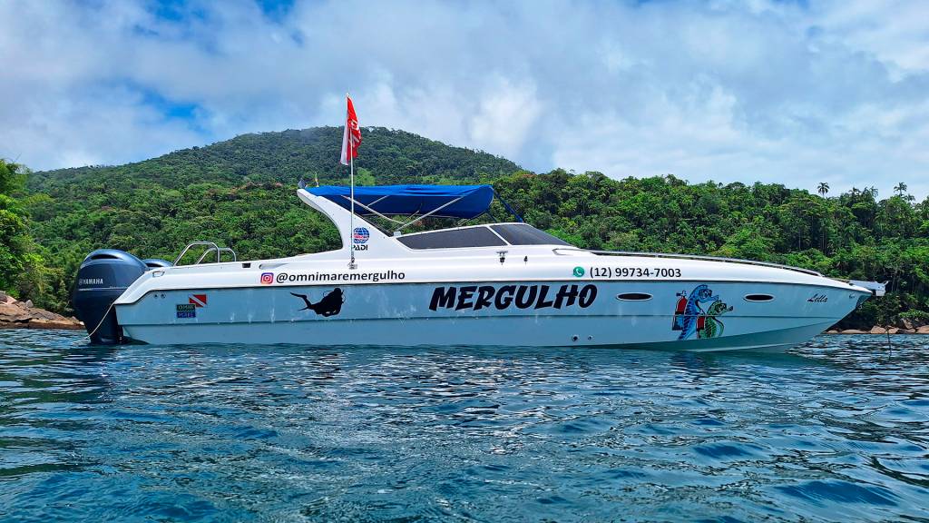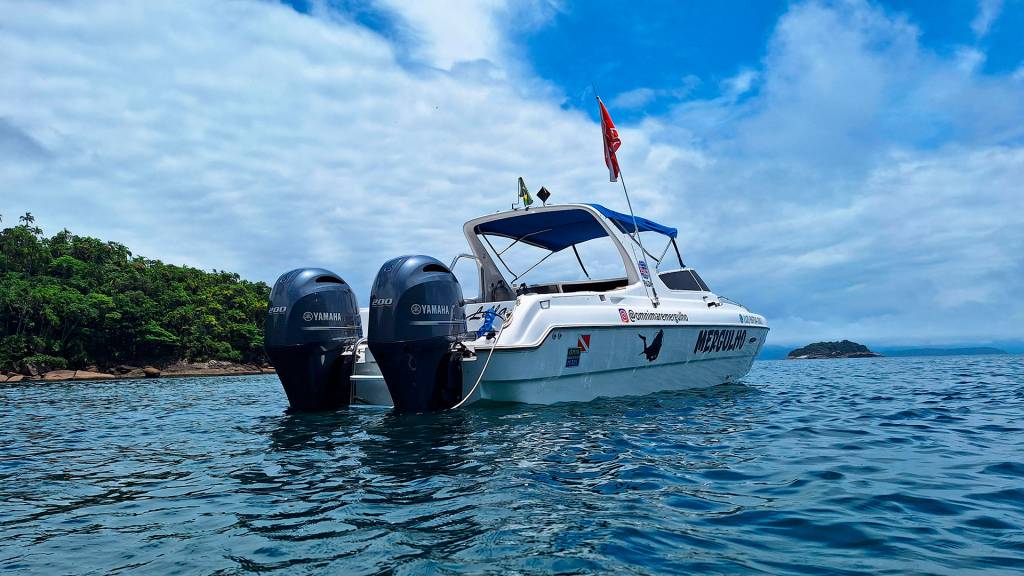 Saídas em lancha rápida para até 08 mergulhadores .